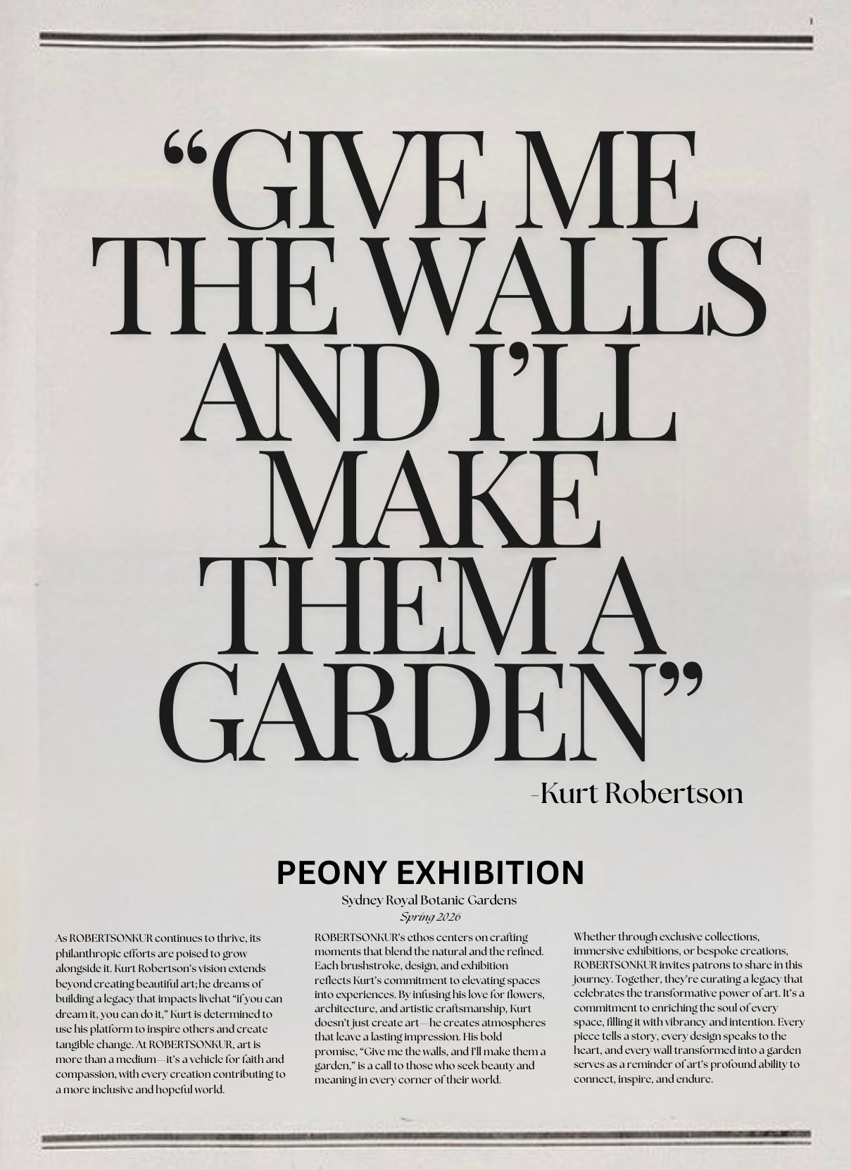 And soon, it will bloom into life. The first exhibition by ROBERTSONKUR invites you into a world where art and nature intertwine. What started as a single peony on the canvas has grown into a living garden, a celebration of creation, renewal, and the beauty that unfolds when passion meets purpose.