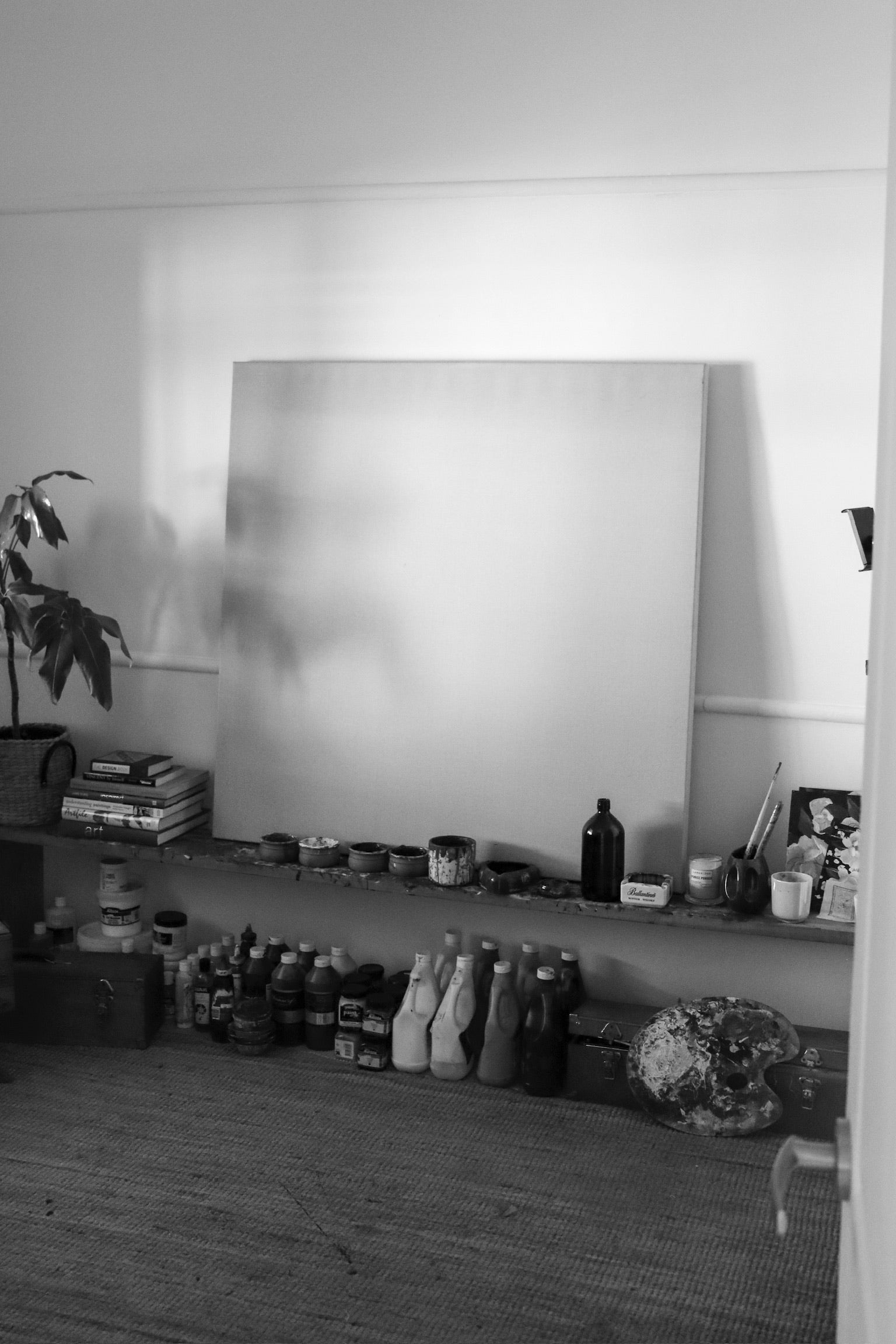 Within ROBERTSONKUR studio, every artwork begins its journey to life with a simple drop of ink on linen. As the ink meets the stretched canvas, it starts a delicate dance, tracing the embryonic outlines of a flower poised to bloom. With each stroke, the lines of ink slowly journey down the fibers, weaving their way through the textured terrain of the linen, each drop a deliberate part of the composition.